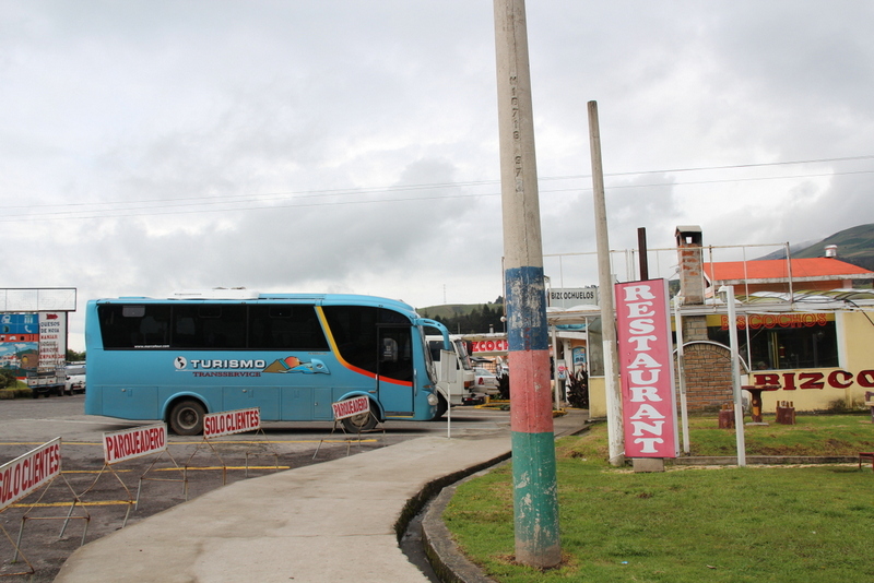 Die Exponate sind mäßig beeindruckend, aber der Weg zum Fluss runter entschädigt reichlich. Auf dem Rückweg machen wir in einem kleinen Nest Station für einen Kaffee, bzw. ein Bier, was sich als die bessere Wahl erweist. Kaffee-und-Kuchen-Kultur war ja noch nie meines, aber das ist nun wirklich die Krönung, was die Ecuadorianer daraus machen.