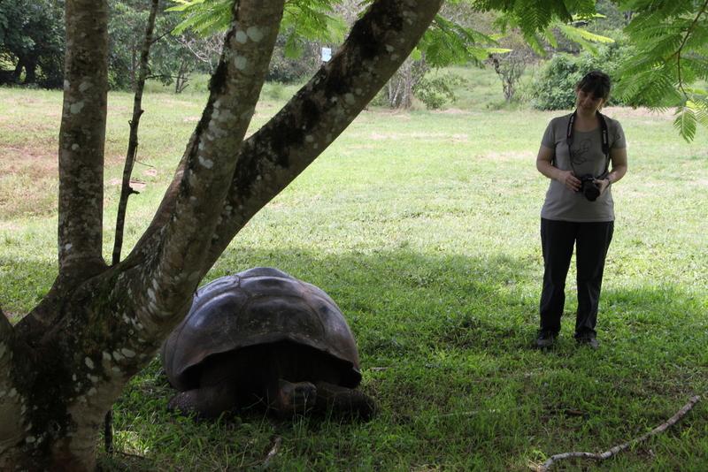 Dann im relativ kleinen Bus ins Hochland der Insel und schon auf der Fahrt sehen wir die ersten großen Schildkröten am Straßenrand