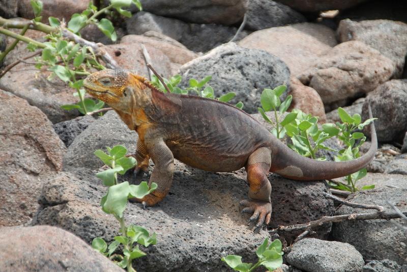 Alles ist voll mit Lava-Eidechsen (Tropidurus delanonis), die zu den Leguanen gehören. Die Weibchen haben eine (bisweilen leuchtend) rote Kehle, die Männchen eine wunderschöne dunkle Zeichnung und einen auffälligen Kamm.