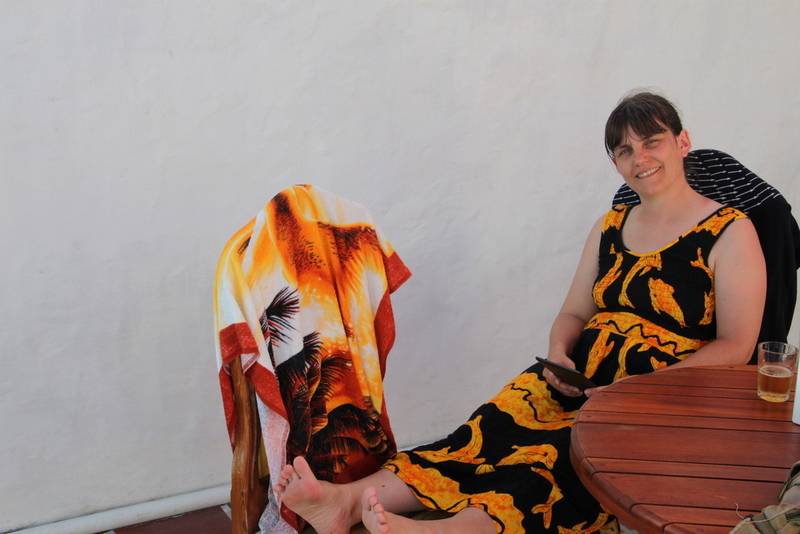 Eine Mail an den Reiseveranstalter später und dem festen Vorhaben, dort keinen Fuß mehr hineinzusetzen, sitzen wir am Abend zum Fotos gucken vor unserem Zimmer und lassen uns in der schlagartig mit dem Sonnenuntergang eintretenden Dunkelheit noch ein Bier schmecken.