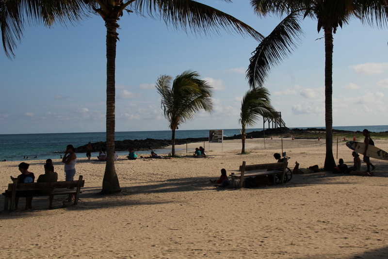 Es folgt ein unglaublich vielseitiges Programm über den ganzen Tag, dass sich aus Schwimmen gehen (fast 40m bis zum Meer, immer diese Langstrecken), Essen gehen (das sind sogar fast 100m, ich prangere das an), im Bett liegen (Klimaanlage!), in der Hängematte liegen und dergleichen in selektiver Wiederholung zusammensetzt.