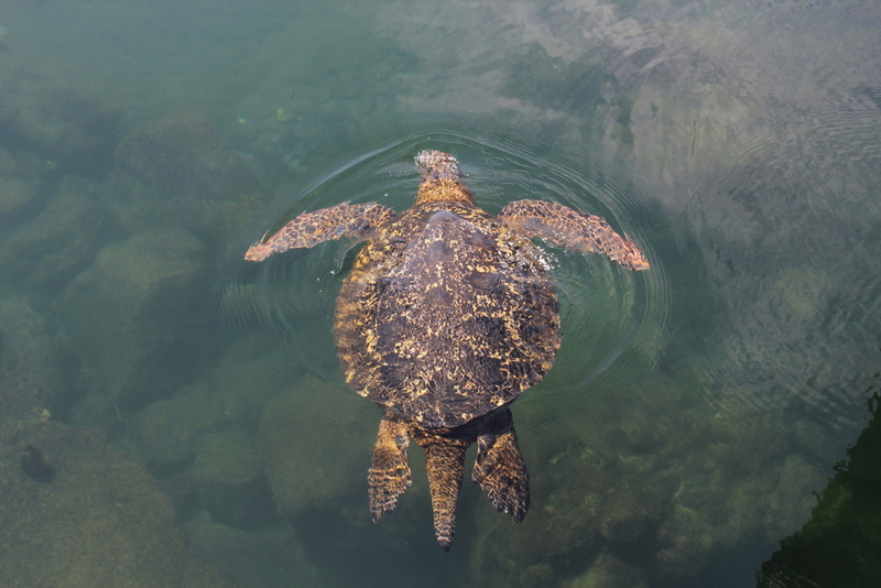 Bei einem kurzen Landgang sehen wir in einem Becken eine Meeresschildkröte majestätisch vorbeigleiten und freuen uns schon auf das Schnorcheln, das sich anschließt.