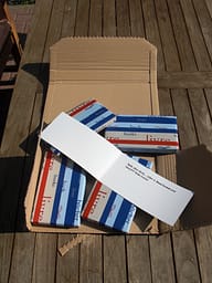 Nach Hause (immer noch Sonne) zurückgekehrt, erhielt ich vom freundlichen DHL-Boten (der, der unser Haus findet!) noch eine besondere Überraschung in Form eines zwar angekündigten, aber nichtsdestotrotz sehr erfreulichen Geburtstagsgeschenks, wodurch der ‚liesmich-Stapel‘ nochmals enorm anwächst (meine weniger als halbherzigen Versuche, diese Situation als misslich zu verkaufen, hat Babsi kaltlächelnd wegargumentiert. Es ist schon ein hartes Los, das zu Tragen mir aufgegeben wurde ;-)