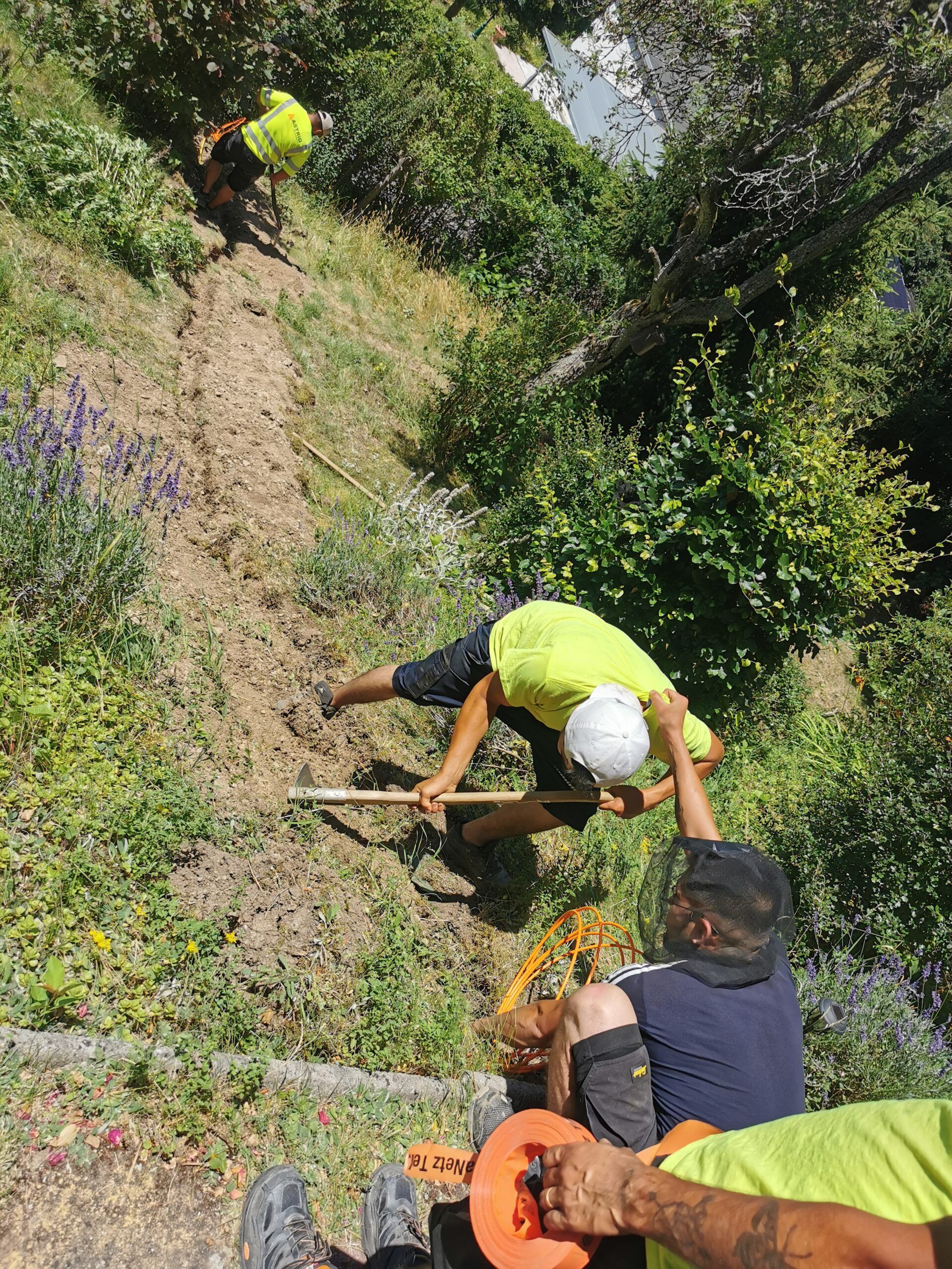 Aufgrund der Ankündigung, dass sie demnächst aufgraben wollen, habe ich die ungefähre Richtung an einem Nachmittag mit dem Rasentrimmer vorgezeichnet.