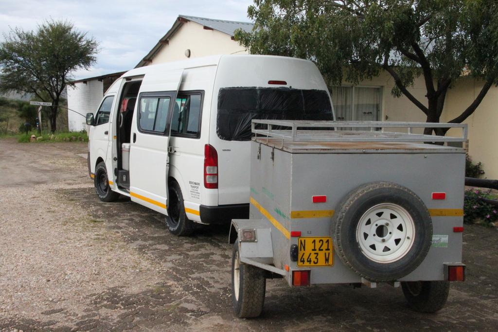 Windhoek Lager ist aber gut trinkbar und vermittelt einen Eindruck der namibischen Braukunst. Mit Hilfe der Sleeping Aid der besten Nachbarin der Welt schaffen wir es dann tatsächlich – mit kleinen Unterbrechungen – bis knapp halb sechs morgens im Flieger zu pennen. Um kurz nach sieben landen wir in Windhoek und werden am Ausgang von Gustav empfangen, der für die kommenden Wochen unser Reiseleiter sein wird.