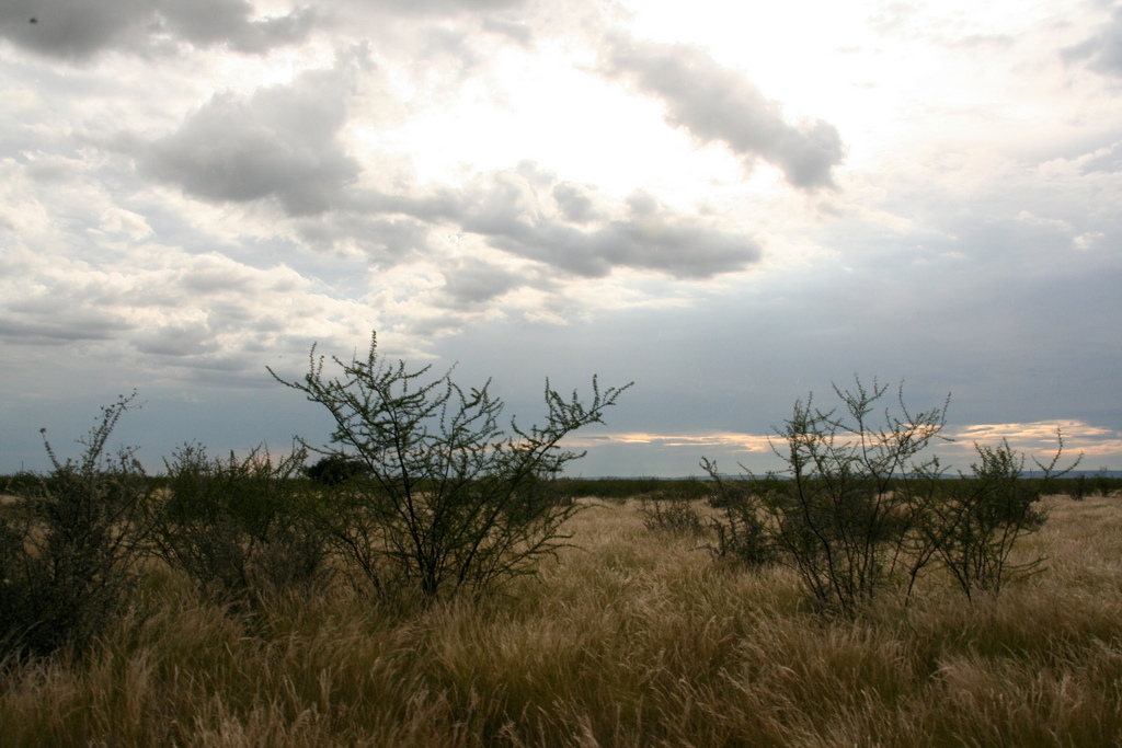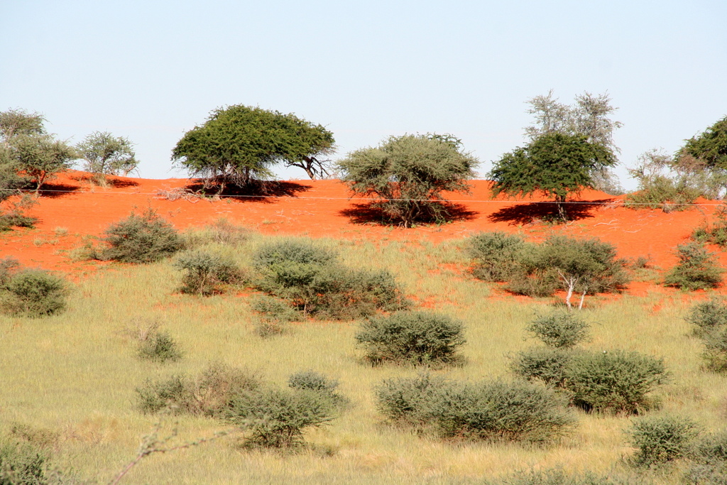 Das Land ist überwältigend grün und das Gras steht so hoch, dass gerade mal die in diesen Ausläufern der Kalahari, wo wir uns befinden, beheimateten Termiten den roten Sand sichtbar auftürmen. Tiere sind nur zu sehen, wenn sie sich auf oder an der Straße befinden.