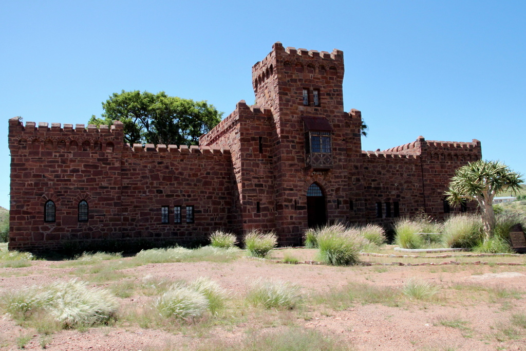 Kurz nach dem Mittag erreichen wir Schloss Duwisib, welches ein deutscher Adliger im Stil einer Lego-Burg (oder Disneyworld) mitten in die wunderschöne Landschaft Namibias pflanzte, dort zwei Jahre verbrachte, um dann im 1. Weltkrieg zu fallen.