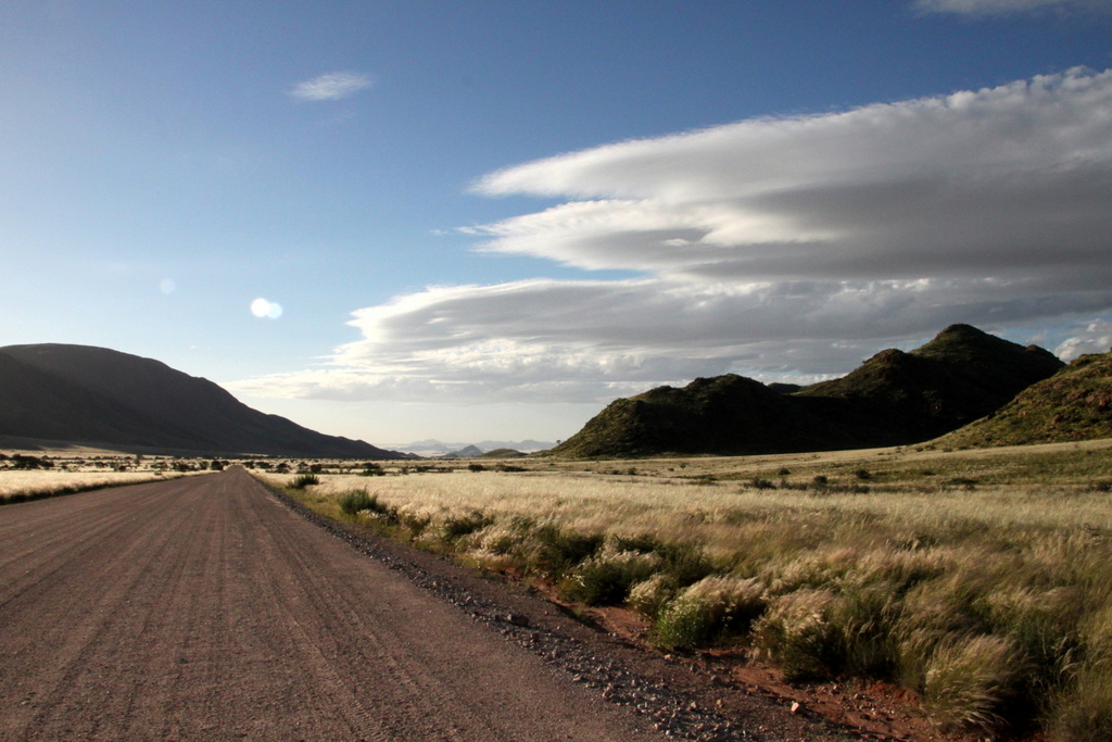 Zwischen der roten Namib auf der linken und den Tiras-Bergen auf der rechten Seite können wir uns am Farbenspiel kaum satt sehen, außerdem haben wir jede Menge interessante Haltepunkte.