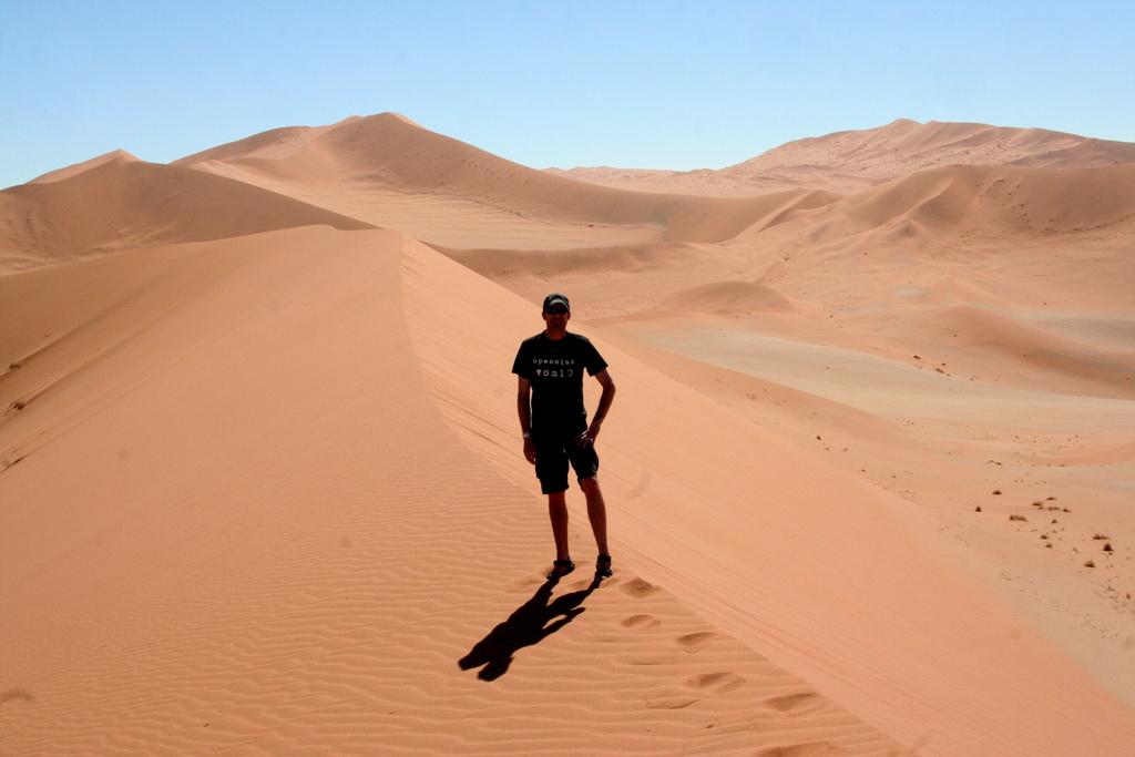 Der Abstieg vollzieht sich dann in wenigen Sekunden – entspanntes Joggen im tiefen Sand bis runter in die Senke.