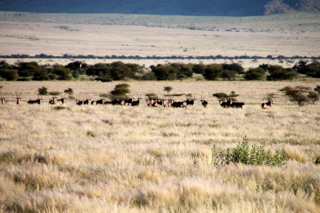 Es wird eine Fahrt der weit entfernten Tiere – wir sehen Zebras, Oryx-Antilopen (noch nie so viele auf einem Haufen gesehen, aber auch noch selten so weit weg…) und einen Klippspringer, der allerdings kaum sichtbar ist.