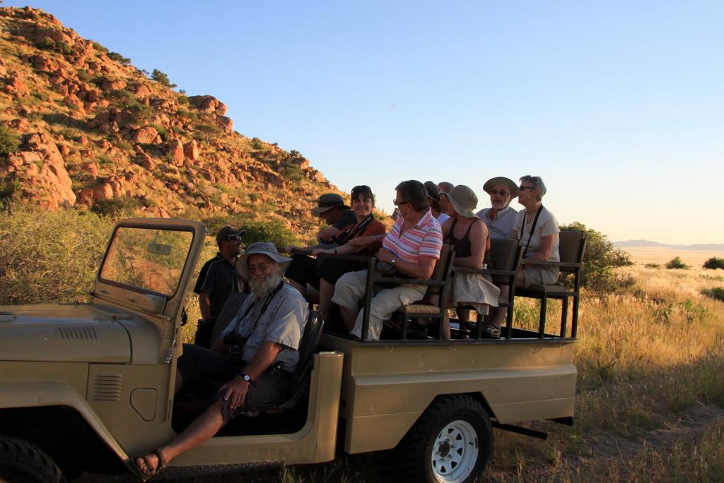 Kurz nach vier geht es zur Fahrt im offenen Geländewagen über die 5.000 ha große Farm.
