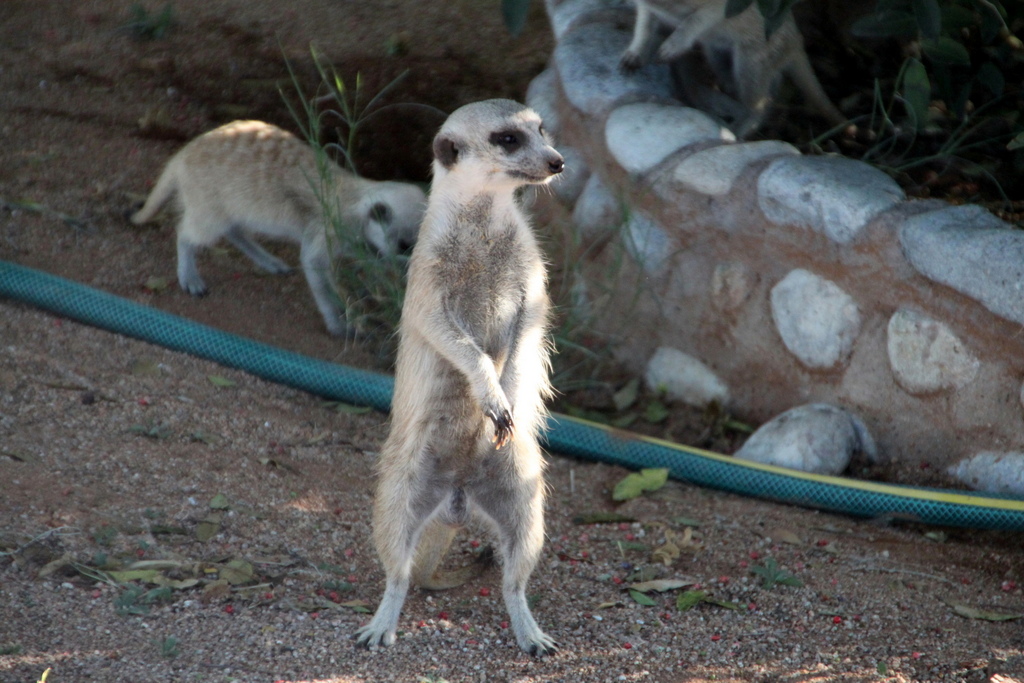 Wir kommen kaum weg, weil die Erdmännchen um das Auto spielen und alle Mann wie blöde am Fotografieren sind.