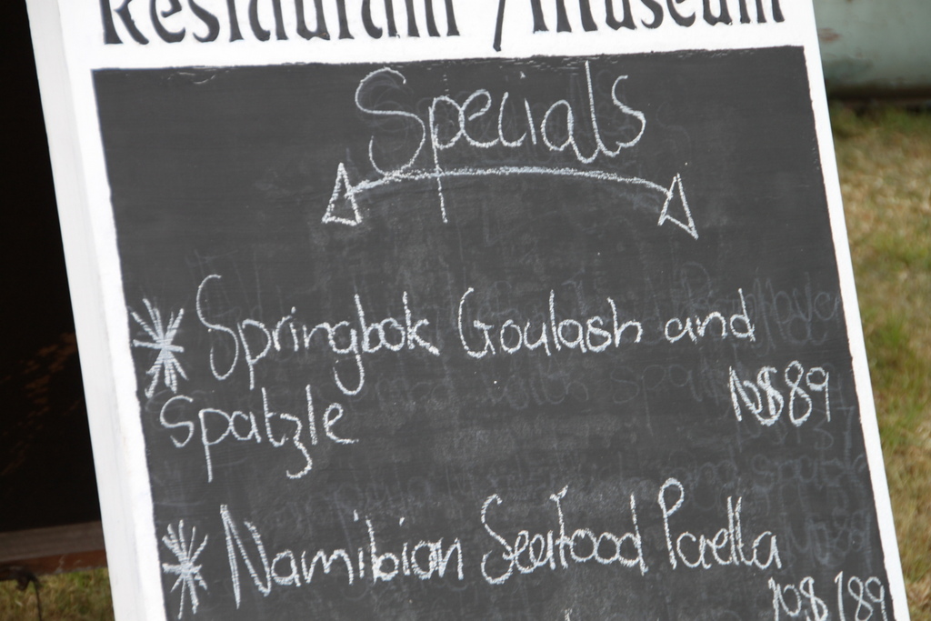 Verpflegung für das morgige Picknick holen wir noch, dann geht es zum Lunch in das Village Café, das Wolfgang Decker uns empfohlen hat – ein toller Tipp, die urige Kneipe bringt uns mit ihren vielen witzigen Schildern und Aufschriften permanent zum Lachen und das lockere Personal macht auch viel Spaß.