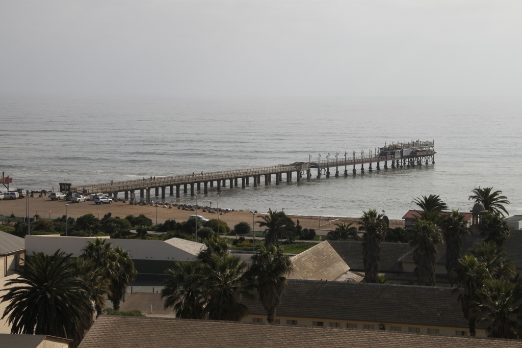 Wir essen gut und billig (oder auch viel zu viel, gell Kathinka?) und gehen danach für ein Päuschen ins Hotel. Dann kommt die Sonne raus (am Vormittag war es eher diesig), wir besteigen den Turm im Woermann-Haus und schauen uns Swakopmund von oben an.