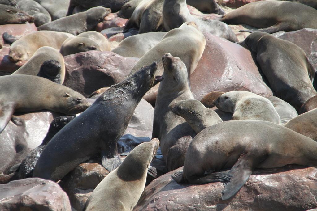 Dann geht es aber doch mit rund anderthalb Stunden Verzögerung los und wir machen uns auf den Weg zum Cape Cross und der dortigen Robbenkolonie. Selbige beeindruckt nicht nur wegen der vielen Tiefe, sondern vor allem, was den Geruch angeht.