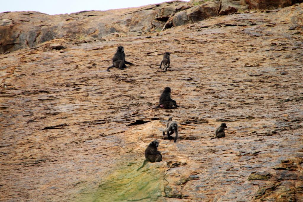 Auf dem Felsen über der Grotte sitzen und spielen einige Paviane, die sich durch uns nicht wirklich stören lassen, zu steil ist der Berg und zu weit sind wir doch weg.
