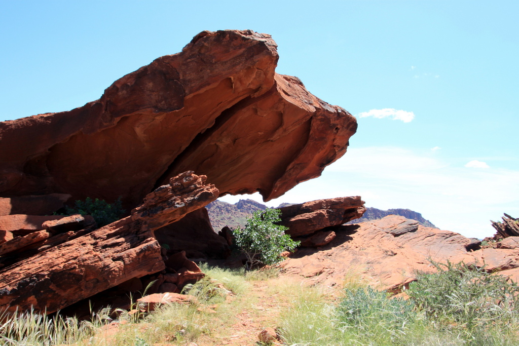 There is shadow under this red rock,