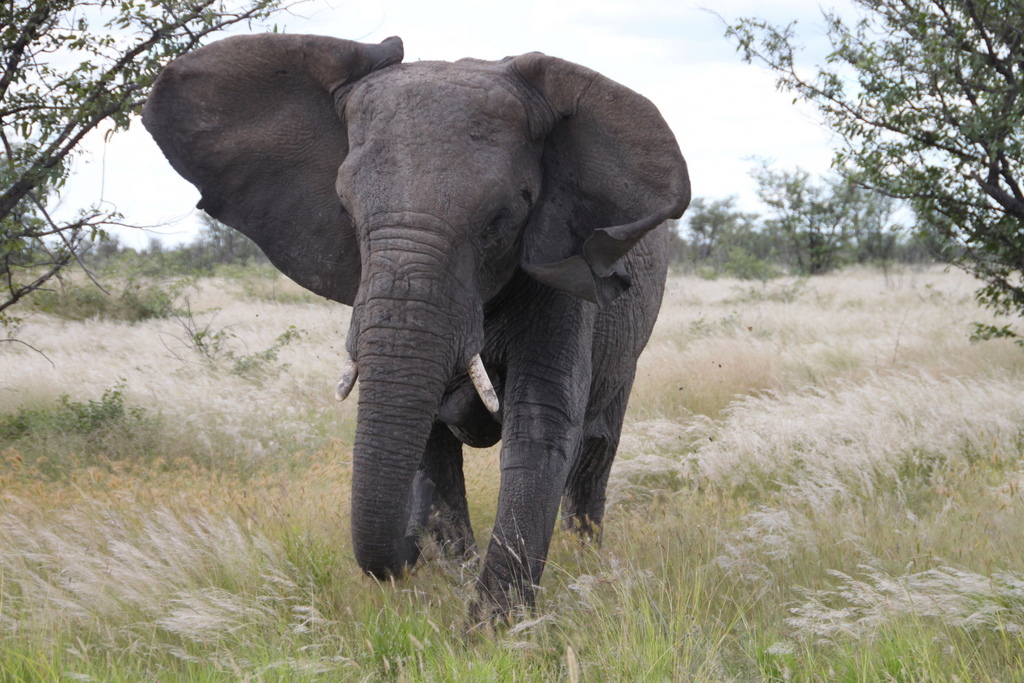 Kurzzeitig kommt er mal auf uns zu und Daniel weicht respektvoll zurück, der große Elefant dreht dann aber ab und verschwindet in den Büschen.
