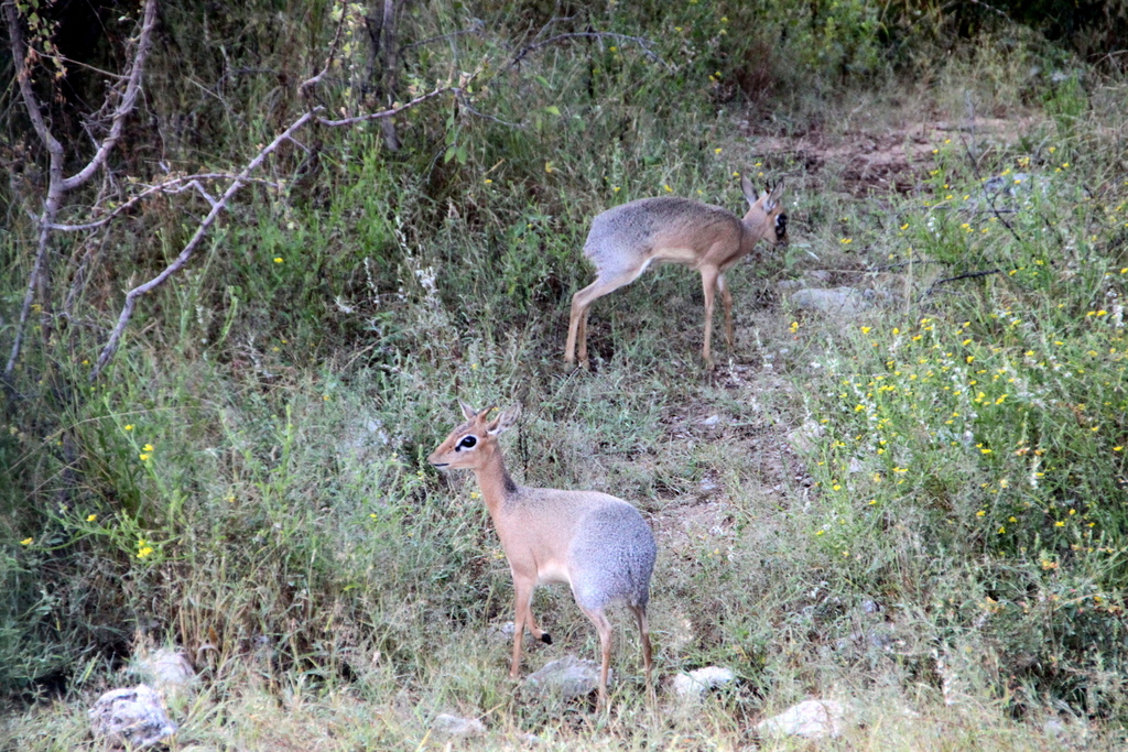 Ebenfalls haben wir dort eine Begegnung mit Dik-Diks, den winzigen Antilopen, die man im Gras zur Zeit genau nicht sieht, weil sie nur 30cm hoch sind.