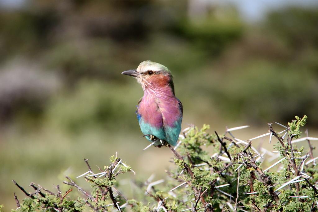 Glanzstare, Blauracken und Rotschnabeltokos sind die Besonderheiten bei den Vögeln, zwei Chamäleons finden wir auch.