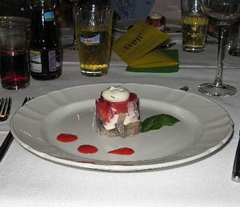 ‚Jungfräulicher Matjes trifft reife Erdbeere‘.