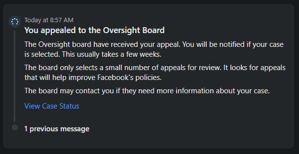 „We reviewed your post again and it doesn’t follow our Community Standards.“