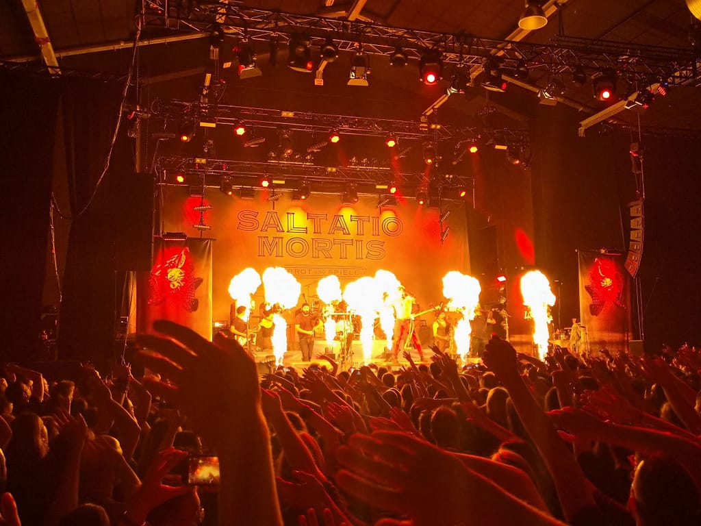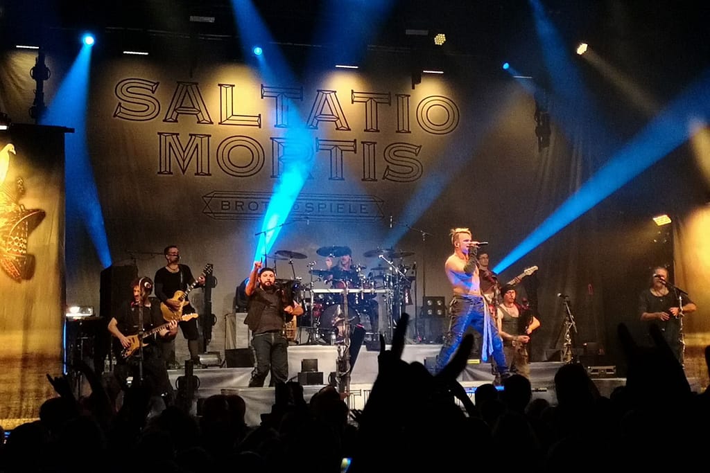 Saltatio Mortis started as a medieval rock band, but have IMHO arrived at a state of punk/stadium rock with medieval elements and since those are made up mainly by the bagpipes, I more than once had the feeling of a Dropkick Murphy’s show with German lyrics :-D