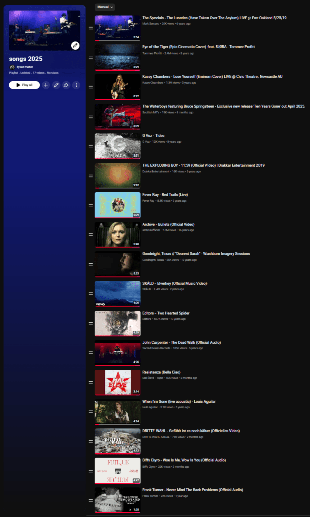 Leaving 2025 and this sampler on a positive, if not hilarious note. Franks love declaration to punk from his Undefeated album is a wonderful romp, 1:27 minutes of fast guitars and even faster vocals. I put on to give myself a reminder for the things to come and I fully support almost every word of the lyrics.
